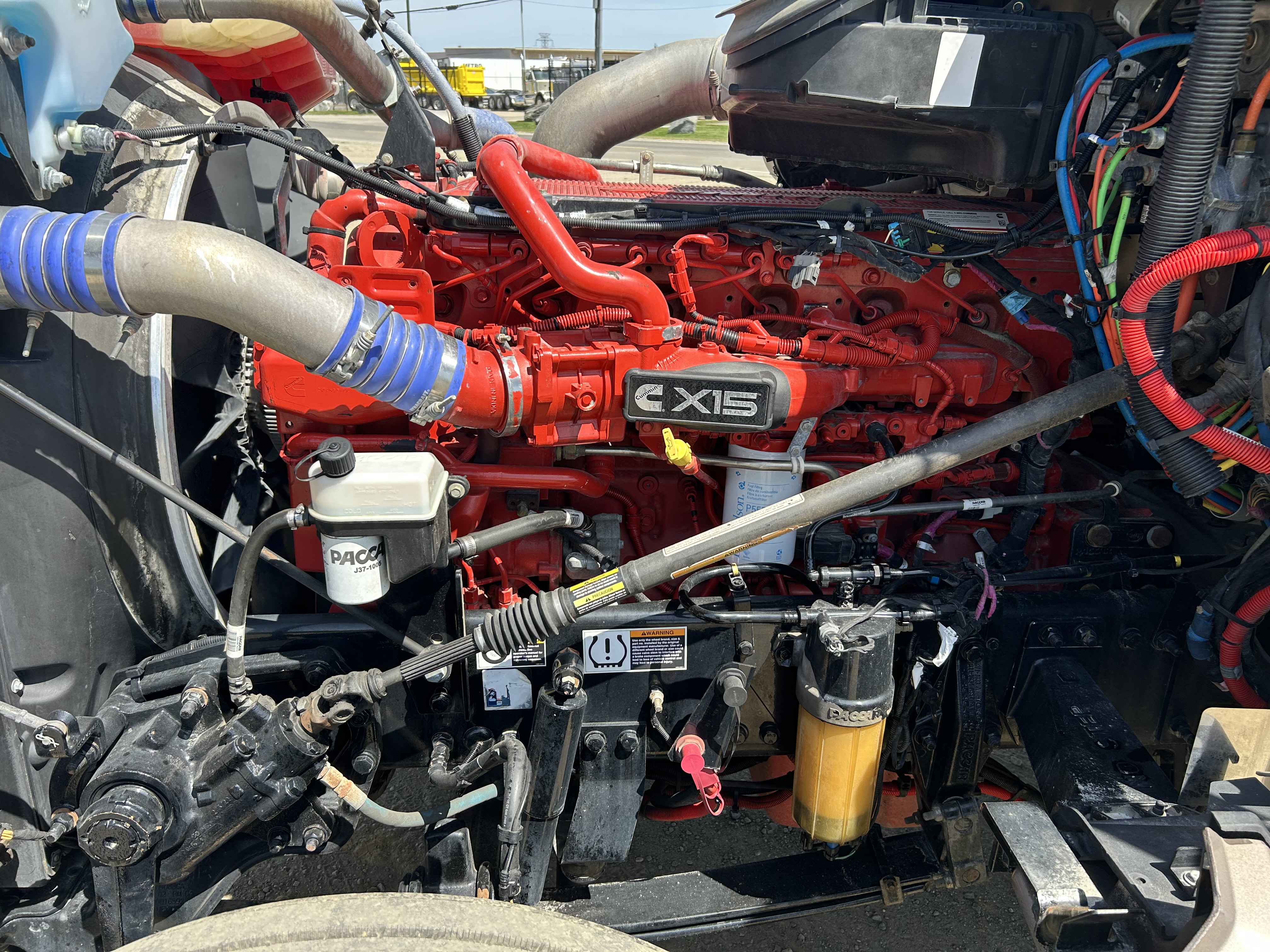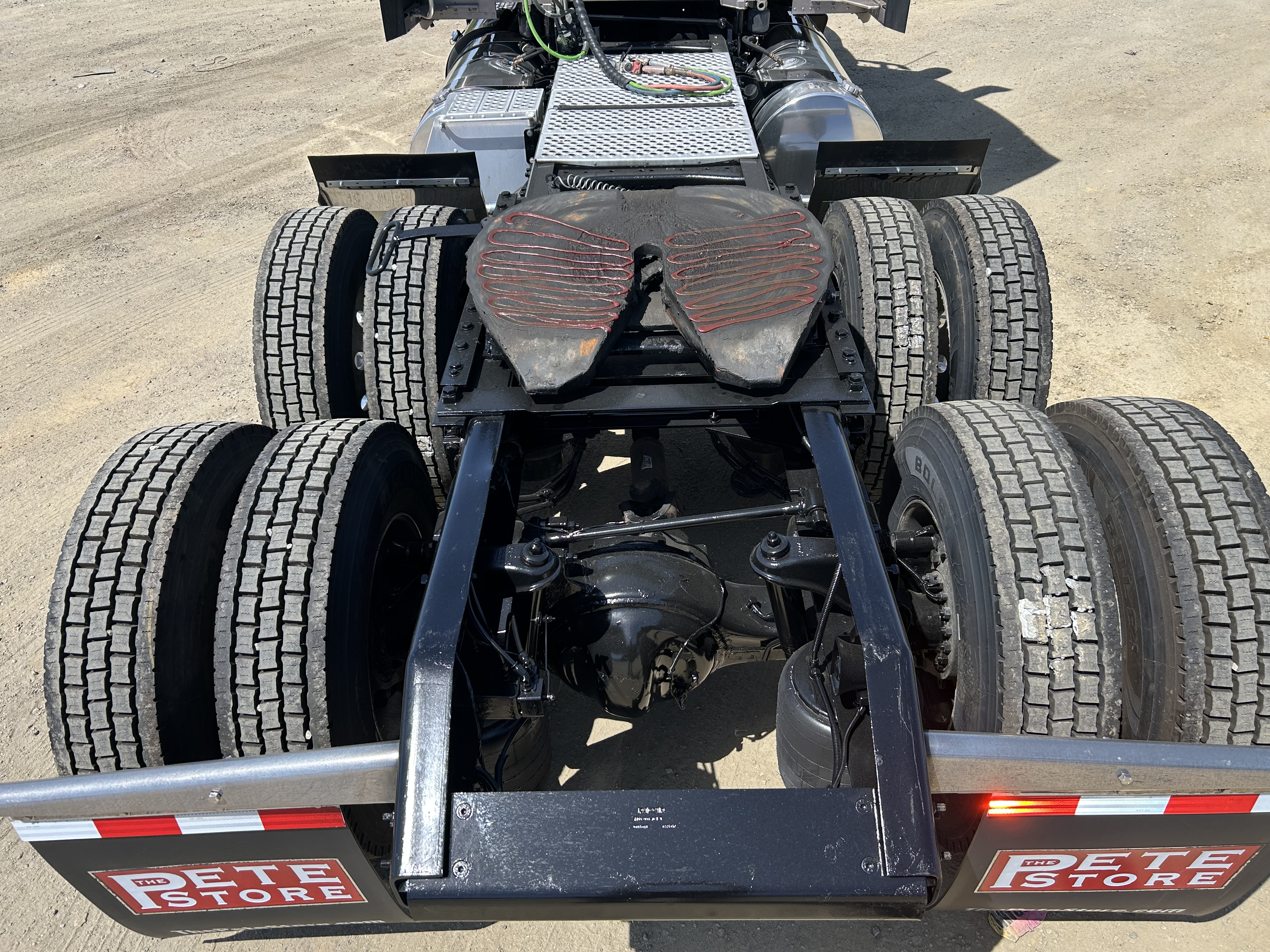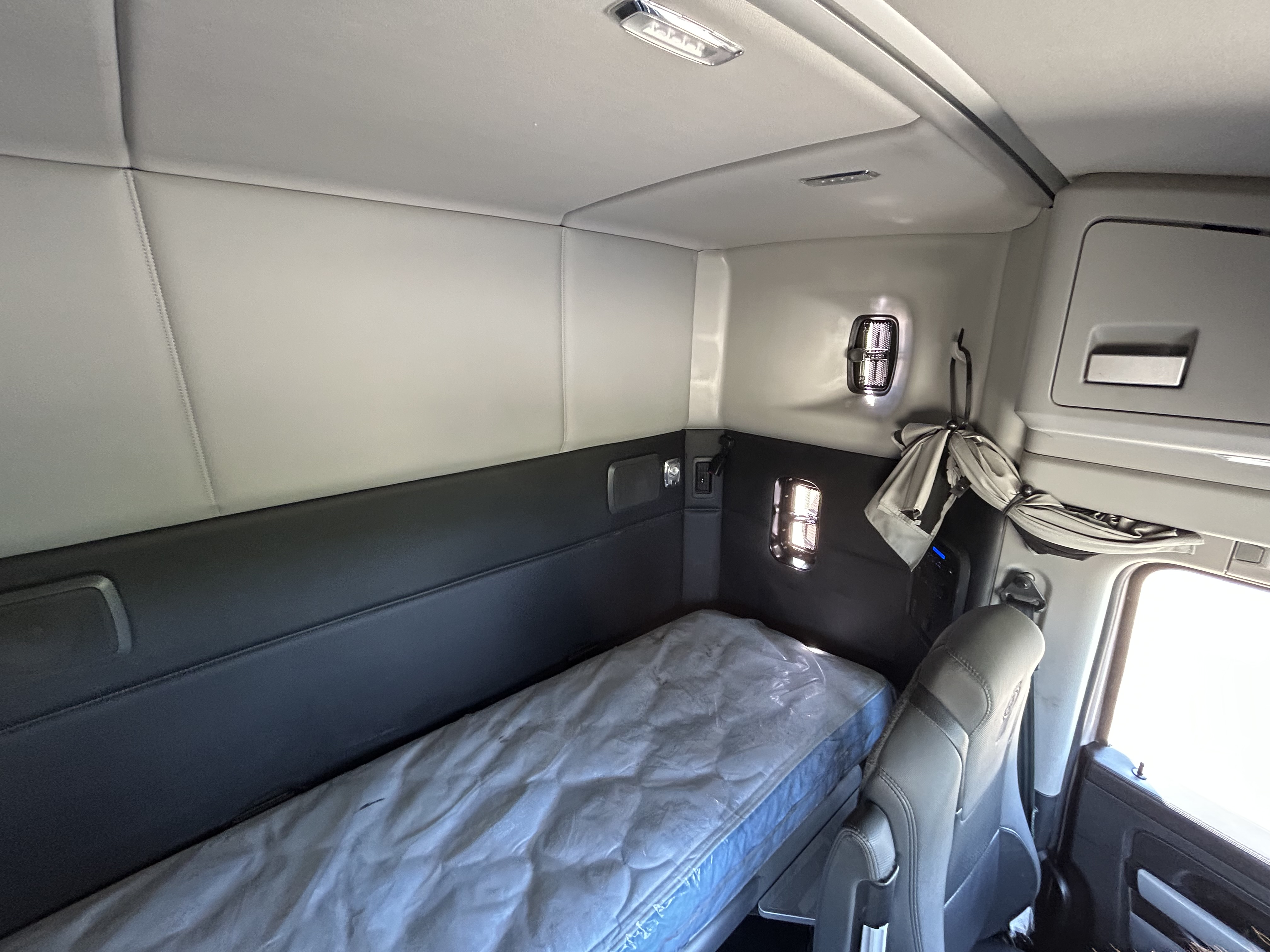 525HP Cummins X15, 1,850 lb-ft torque. 13-speed automated. 497k miles, 9,600 hours — mechanically reconditioned and ready to work. 3.70 rears, 265" wheelbase, all-disc brakes, AG400 air suspension with dump switch. 13.2k steer, 40k rears. Brand new virgin rubber all around, new mattress, 260-gallon split fuel capacity (110/150). Polished front to back.