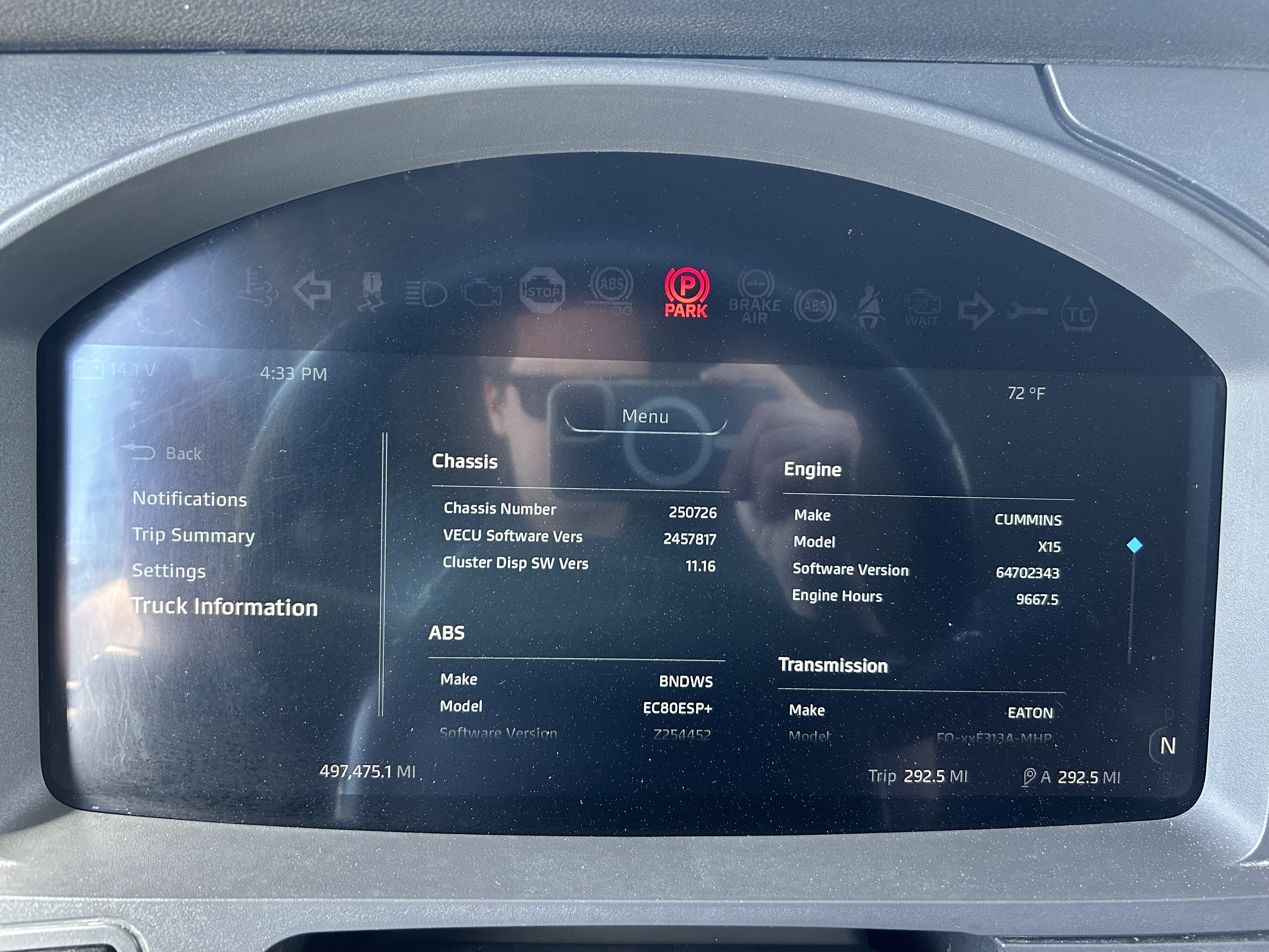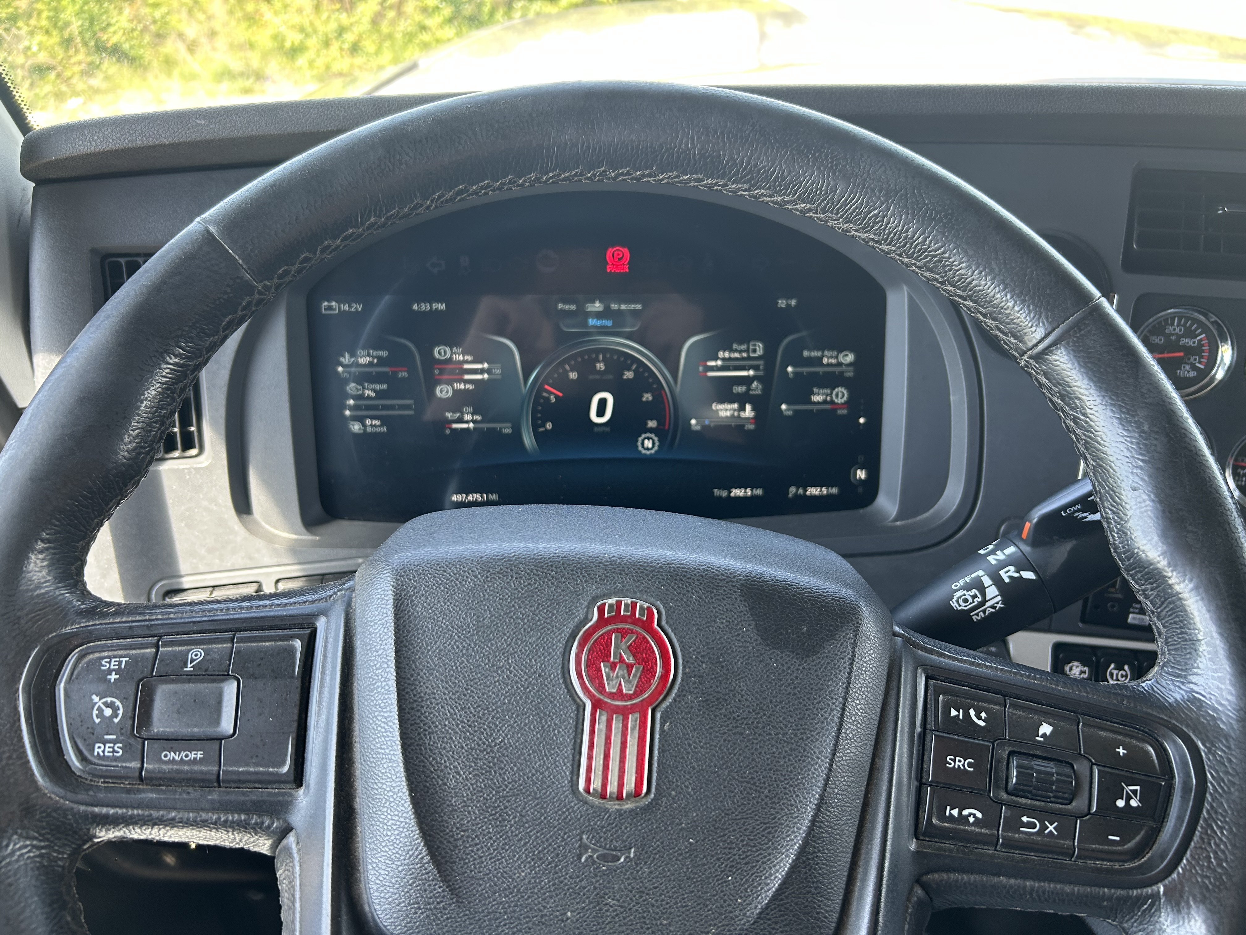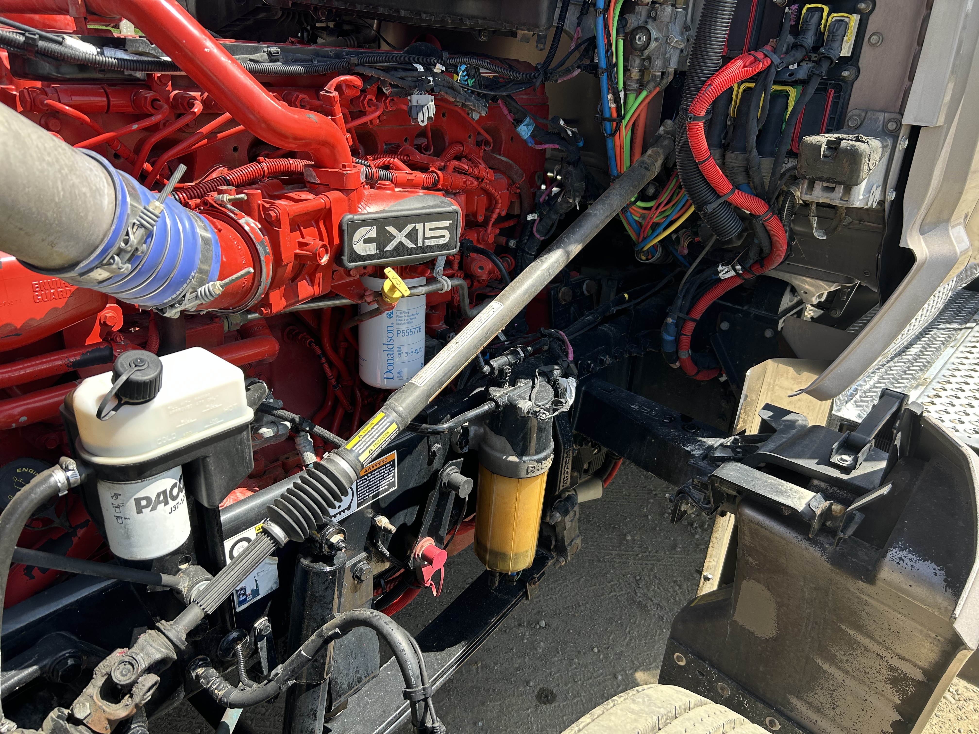 525HP Cummins X15, 1,850 lb-ft torque. 13-speed automated. 497k miles, 9,600 hours — mechanically reconditioned and ready to work. 3.70 rears, 265" wheelbase, all-disc brakes, AG400 air suspension with dump switch. 13.2k steer, 40k rears. Brand new virgin rubber all around, new mattress, 260-gallon split fuel capacity (110/150). Polished front to back.
