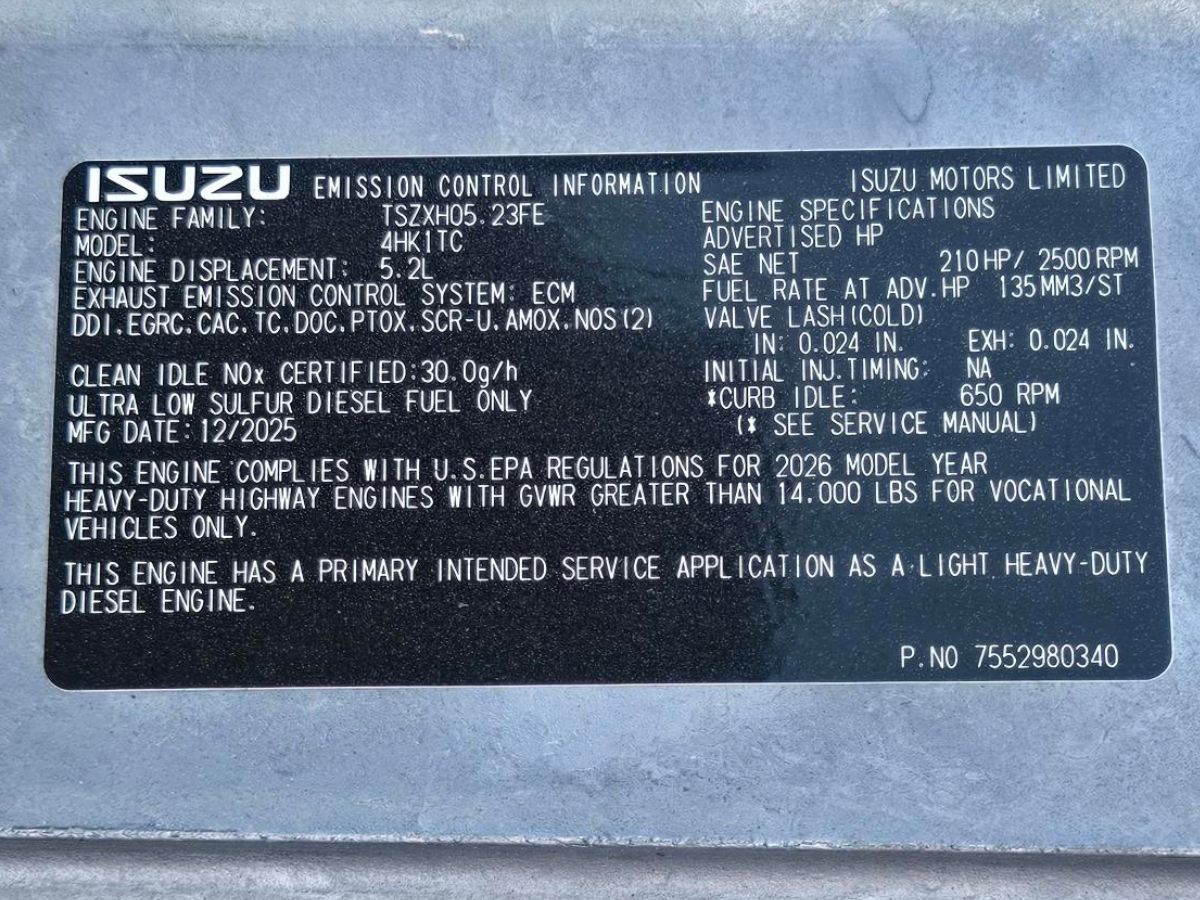 2027 ISUZU NRR CAB & CHASSIS, 215HP DIESEL ENGINE, 6 SPEED AUTOMATIC TRANSMISSION, 19,500 GVW. READY TO BODY UP...CALL FOR DETAILS!!!